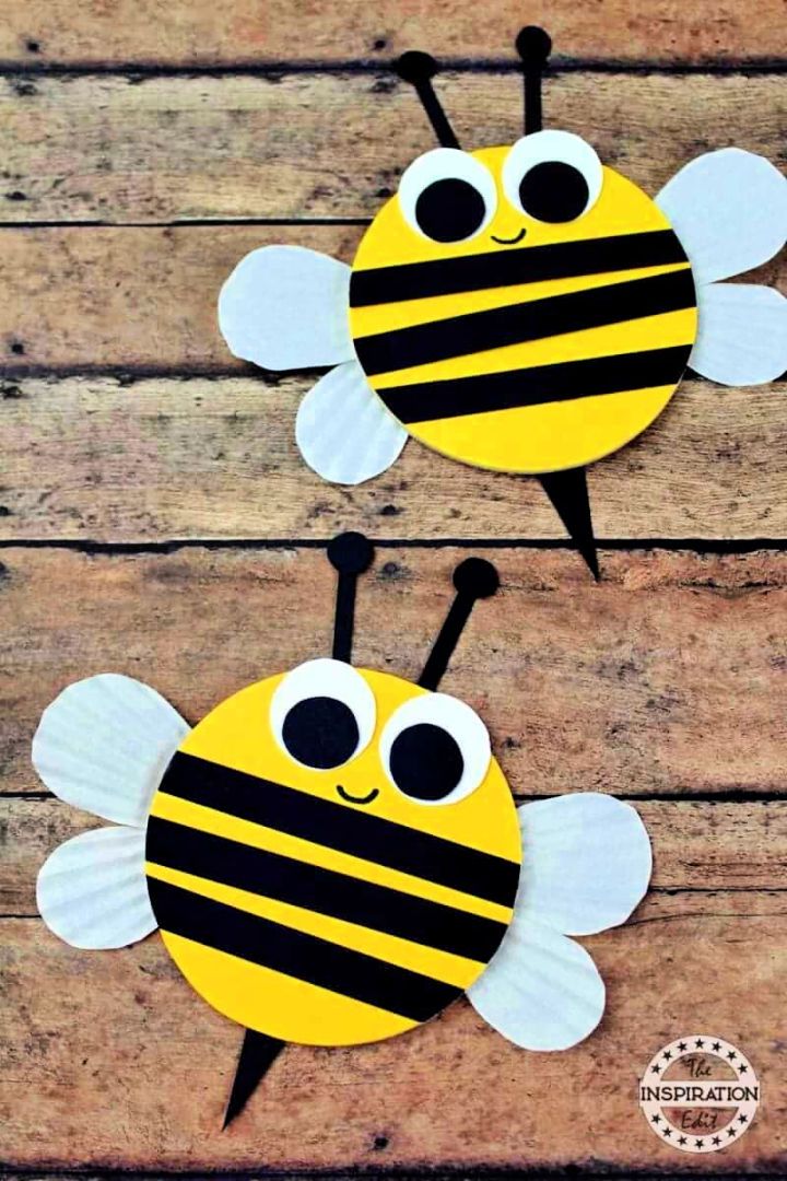 Bienen sind ein typisches Frühlingsmotiv. Kinder können Bienen aus Papier oder Klopapierrollen basteln.