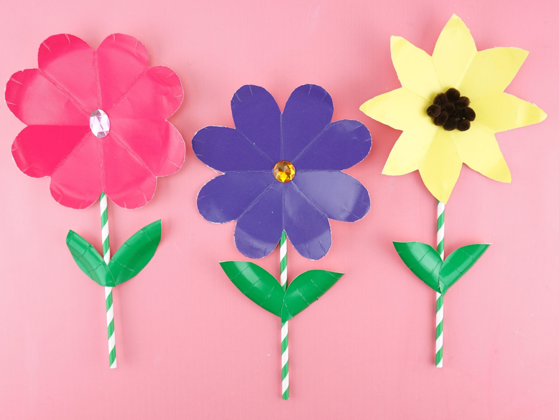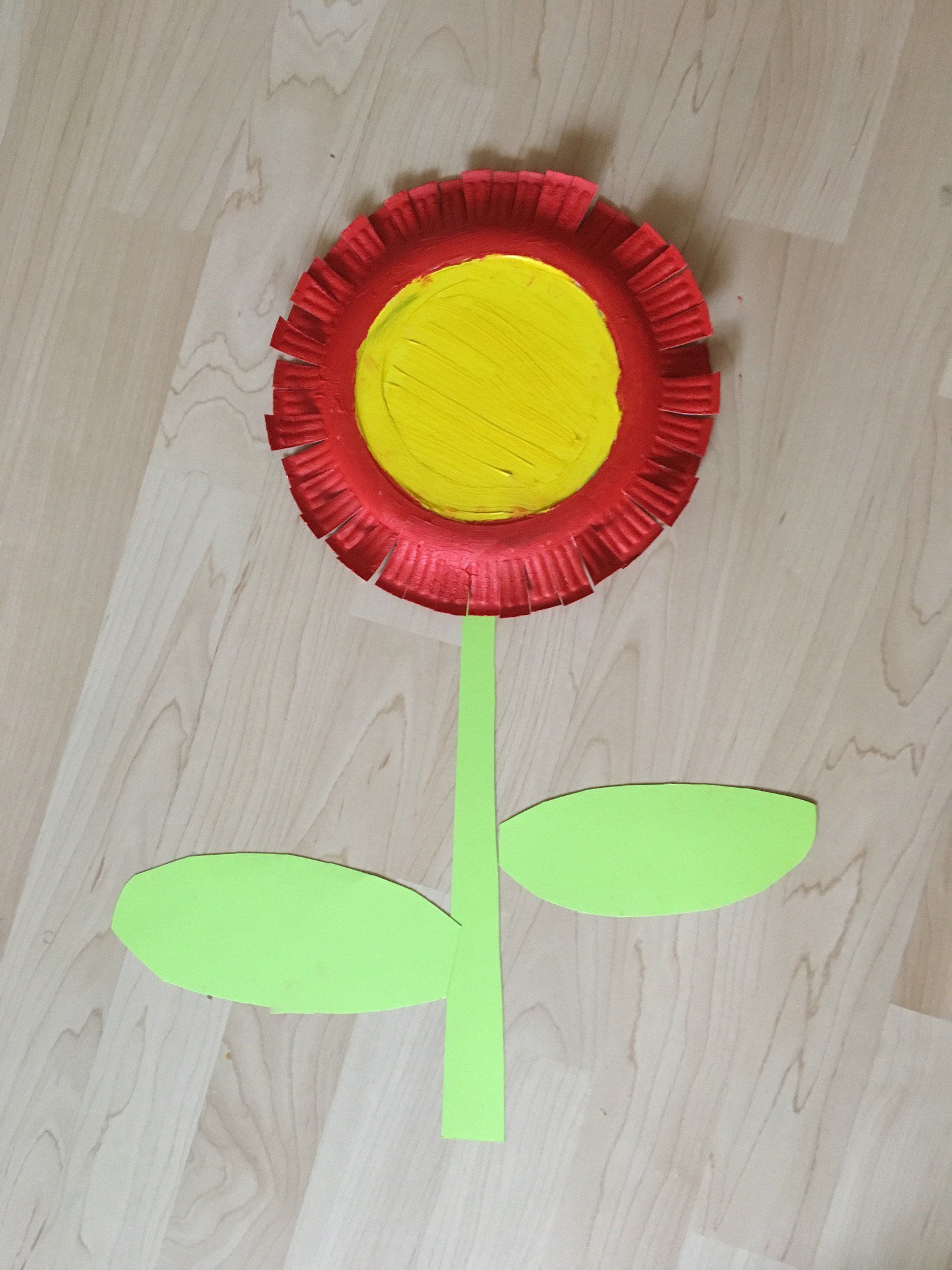 Pappteller eignen sich super zum Basteln mit Kindern. Kinder können die Teller bemalen und daraus große Blumen basteln.