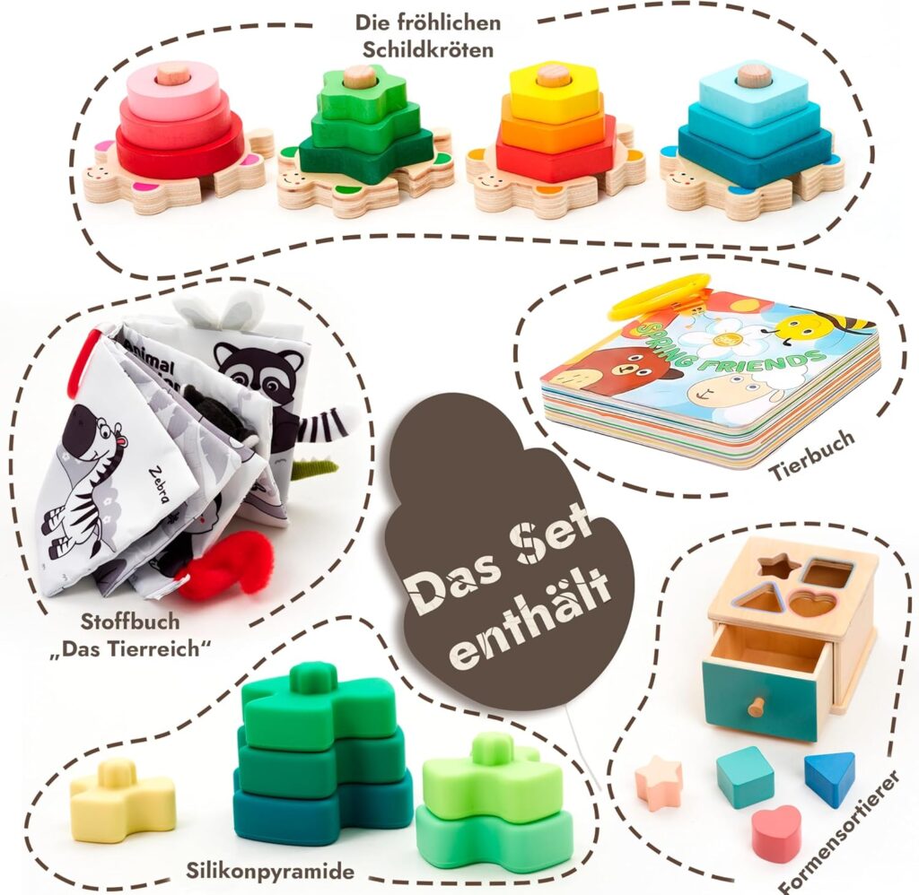 Montessori Spielzeug für Kinder ab 1 Jahr hilft dabei, Motorik, Konzentration und selbstständiges Spielen zu fördern.