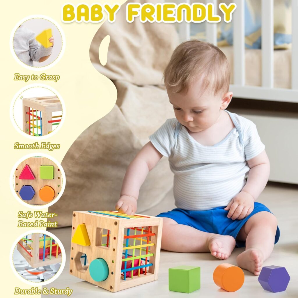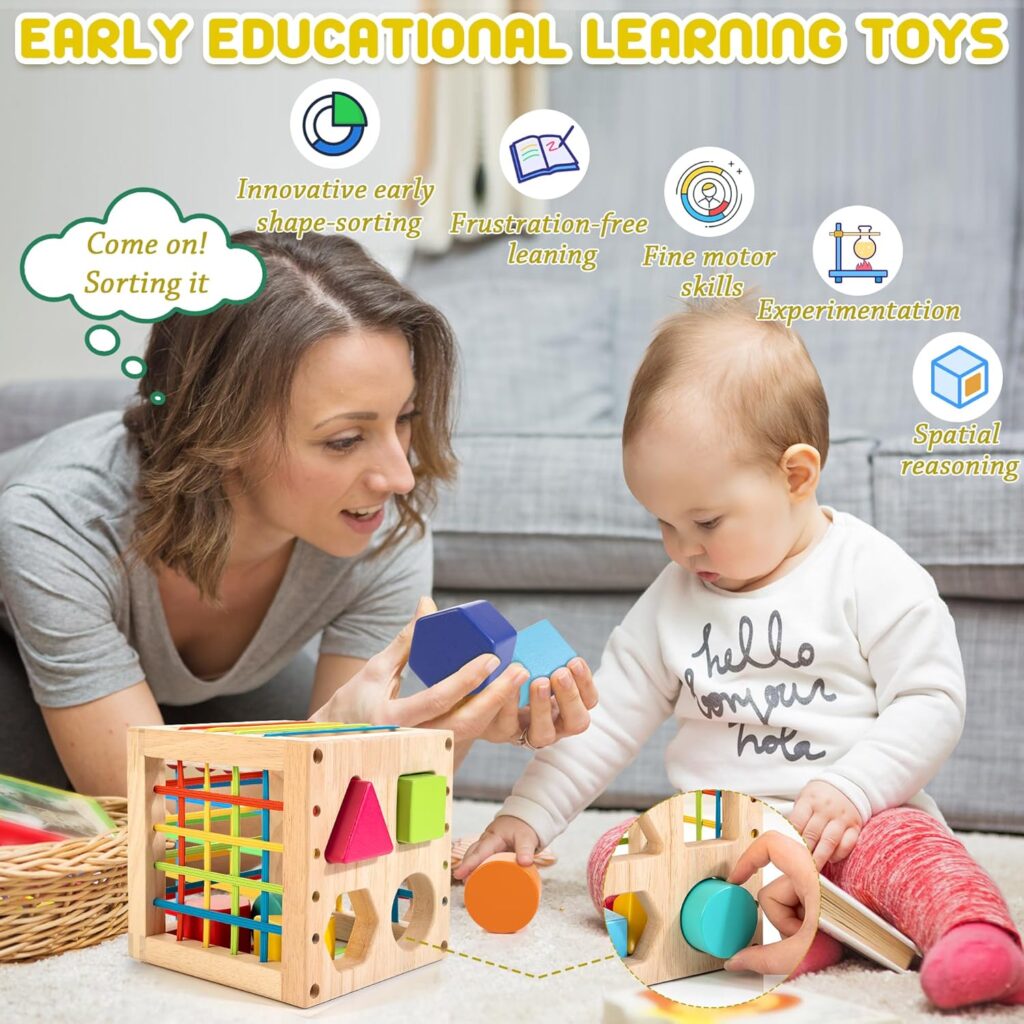 Mit einer Sortierbox lernen Kinder, verschiedene Formen in die passenden Öffnungen zu stecken.